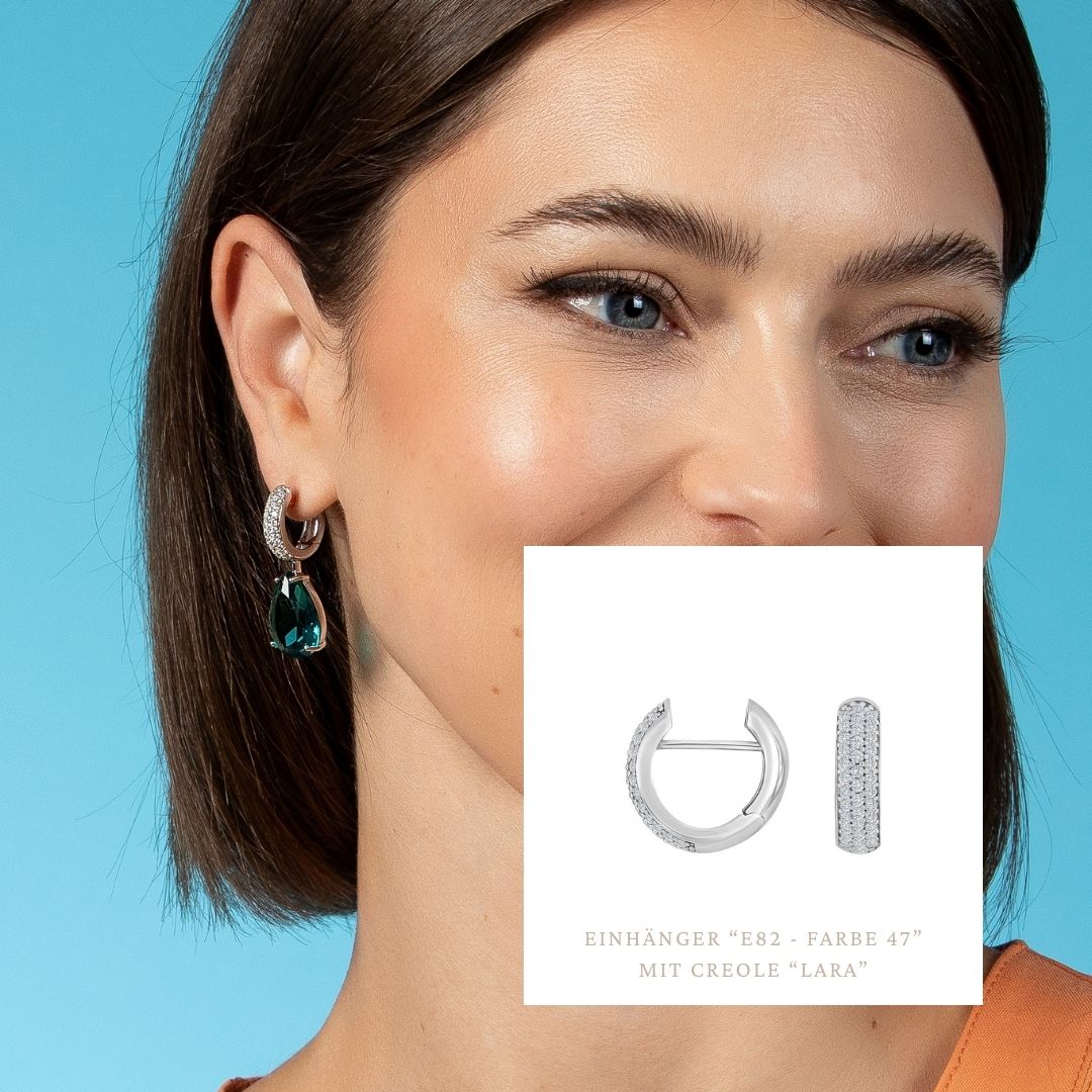 Die Basis-Systemcreole „Lara“ ist ein echtes "glamour girl". Auf der schlanken Silhouette befinden sich vielzählige funkelnde Zirkonia-Steine im Pavé-Dekor. Die perfekte Creole aus 925/- Sterlingsilber für das "kleine Schwarze". Niemals underdressed und niemals overdressed. Eleganz auf ganzer Linie. Kombinieren Sie unsere Einhänger nach Lust und Laune. "Lara" hat die Maße 16 x 5 mm.