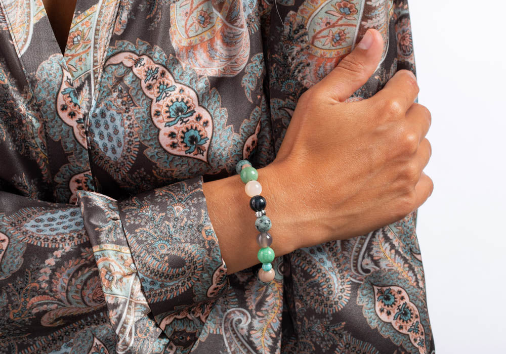 Sonnenstein, Grauer Achat, Tigerauge, Howlith, Jaspis, Labradorit, Schwammquarz Armband