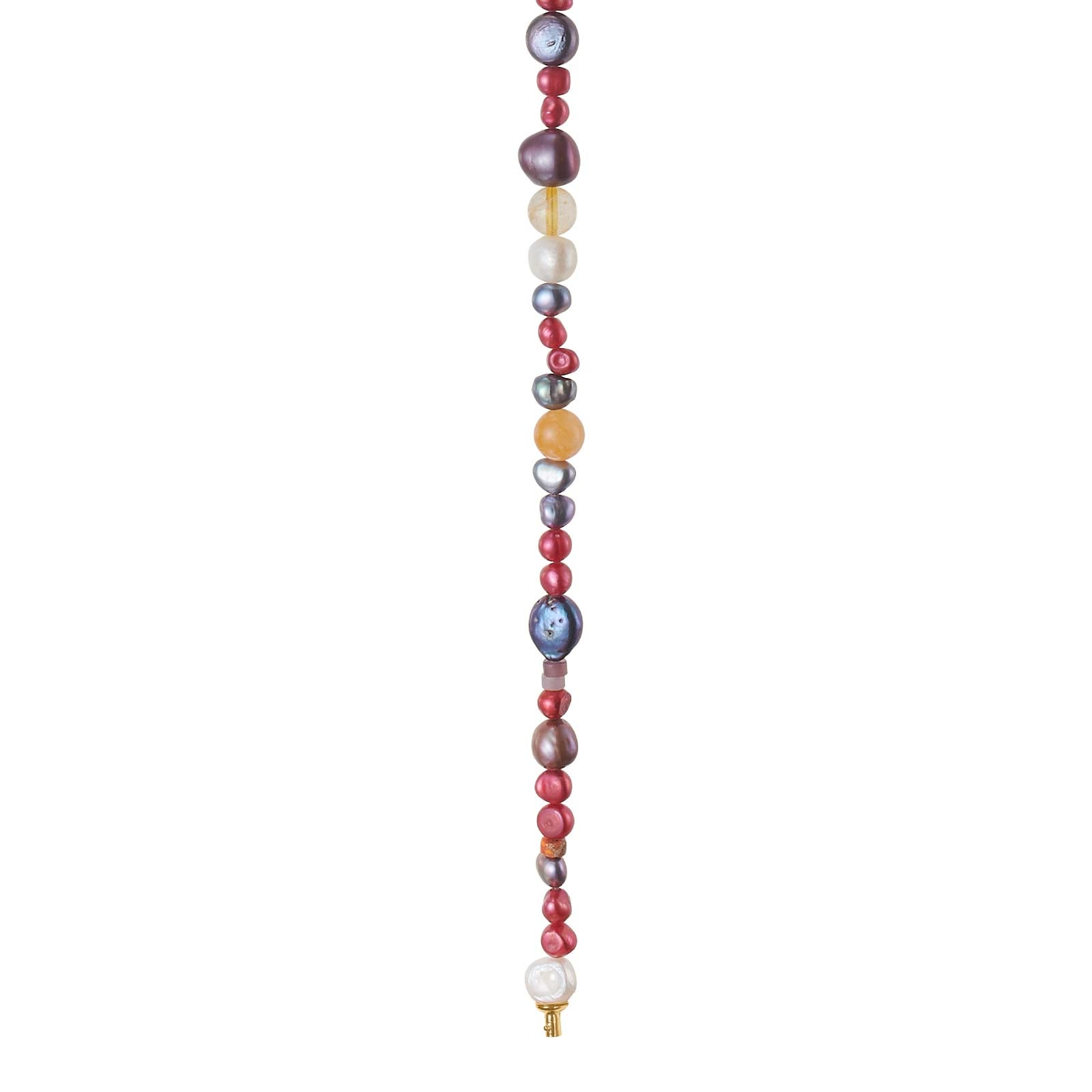 Feminine System-Kette mit Citrin, Quarz, Jaspis, Aventurin und wunderschönen farbenfrohen Süßwasserzuchtperle, die mit den vielzähligen System-Verschlüssen von Heide Heinzendorff kombiniert wird. Darf es heute ein Statement-Verschluss sein, der vorne getragen wird? Oder lieber ein dezenter Verschluss, der hinten getragen wird? Die Länge der Kette beträgt 45 cm, die Steine haben einen Durchmesser von 10 mm. Das Endstück selbst ist aus vergoldetem Sterlingsilber gefertigt.